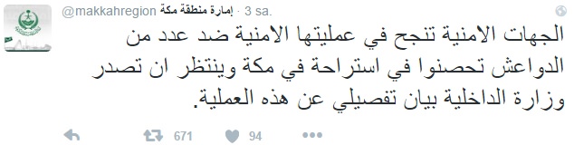 Mekke emniyetinin Pazartesi gününden beri IŞİD hücrelerine gerçekleştirdiği eş zamanlı operasyonlarda birçok militan ele geçirilmişti.