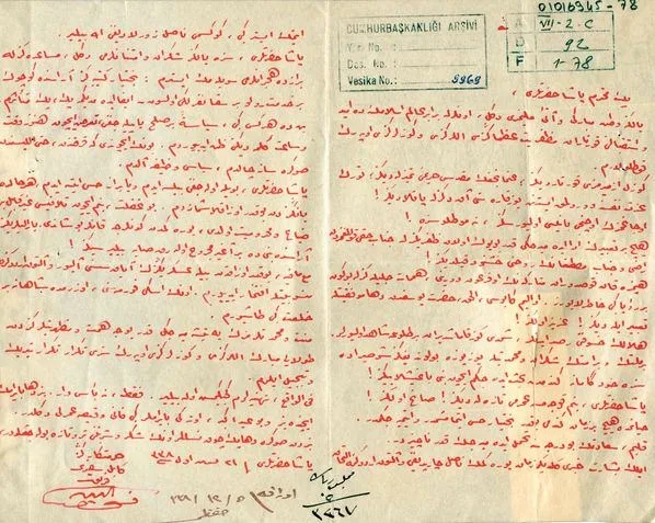 Fahreddin Paşa'nın Mustafa Kemal'e mektubu.