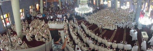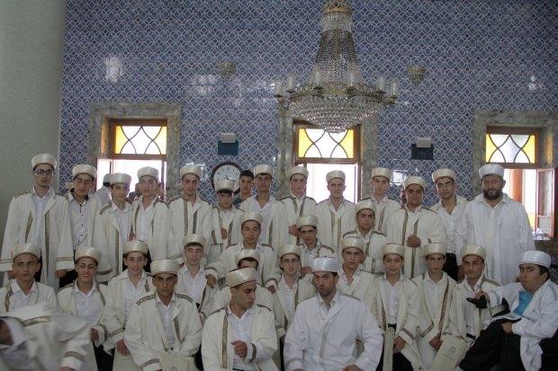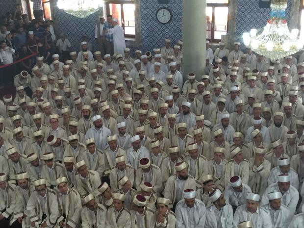 Toplantıda, 366 hafız ve hafize kapalı spor salonuna Mehter marşı eşliğinde yürüdü.